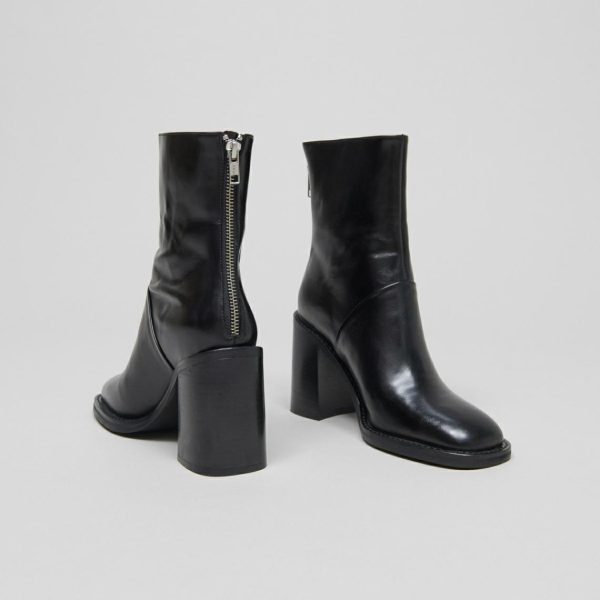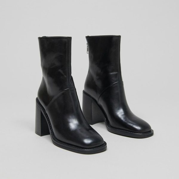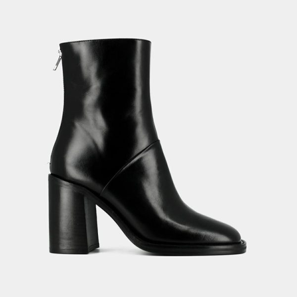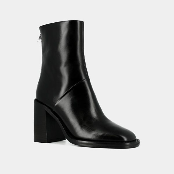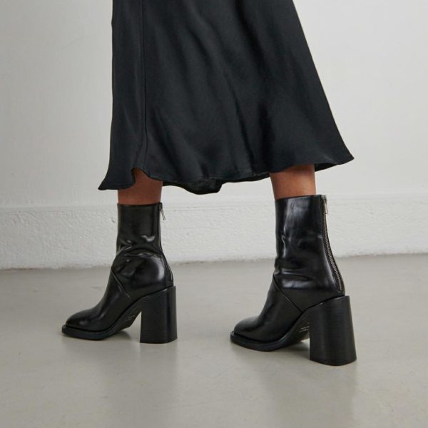 Our DUTY high-heeled boots feature a back zipper for added detail and contrast with their sleek look. Let yourself be tempted by their high heels and black leather.