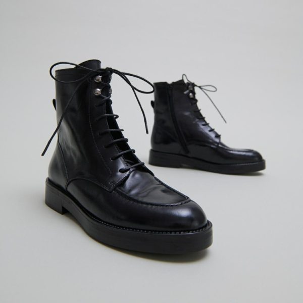 Discover the bold, timeless look of ALIDA lace-up lowboots in black leather. Designed with meticulous attention to detail, these boots combine robustness and character. The laces add a classic touch and a comfortable fit.