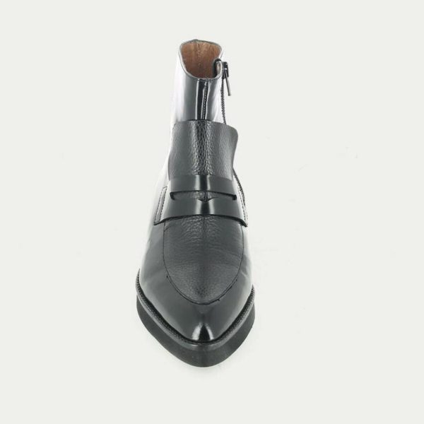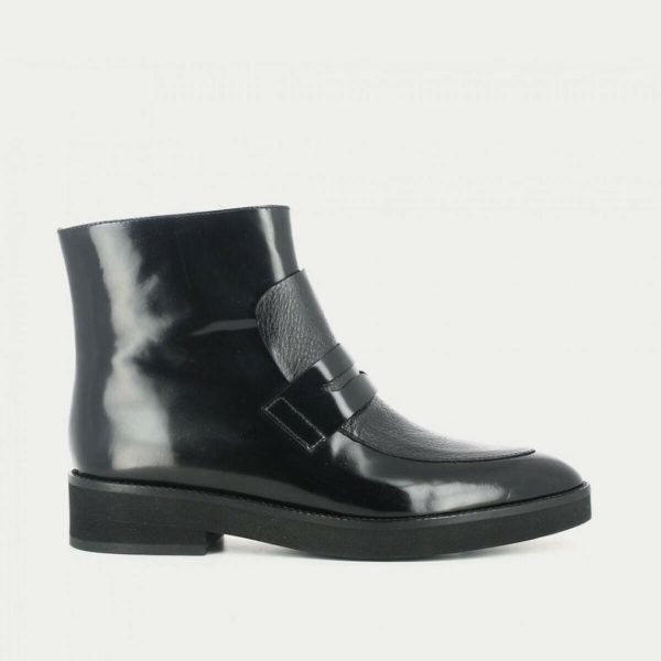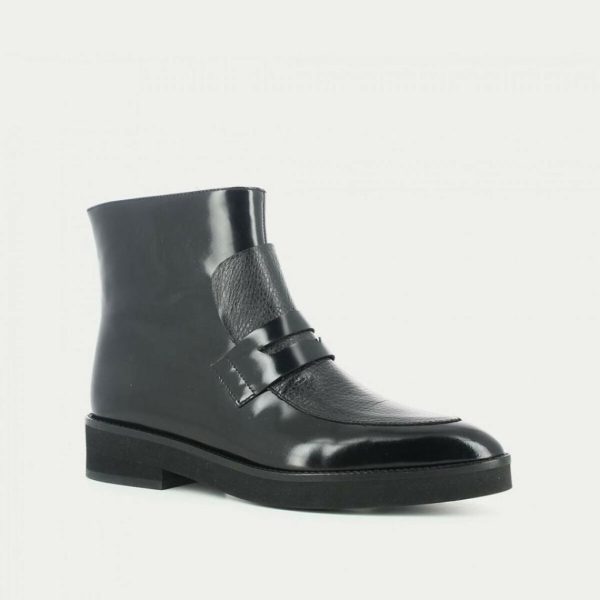 Original moccasins and boots, the mocaboots are definitely the shoes you need this season. The set of black grained leather and glossy leather make them irresistible and easy to wear on any occasion. Do not resist! Heel 3 cm.