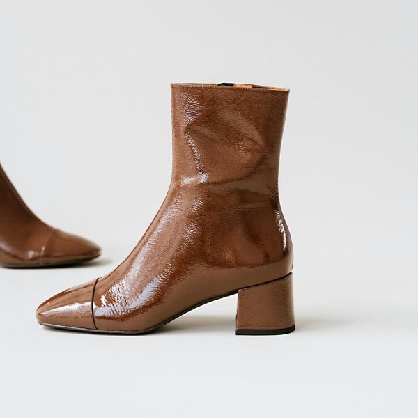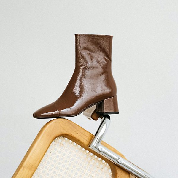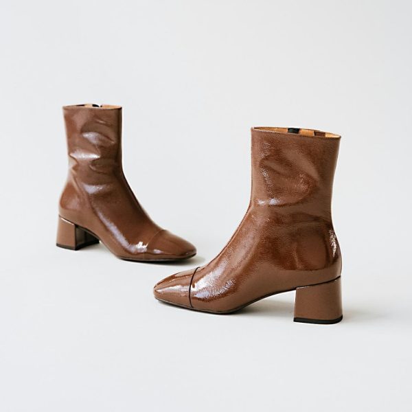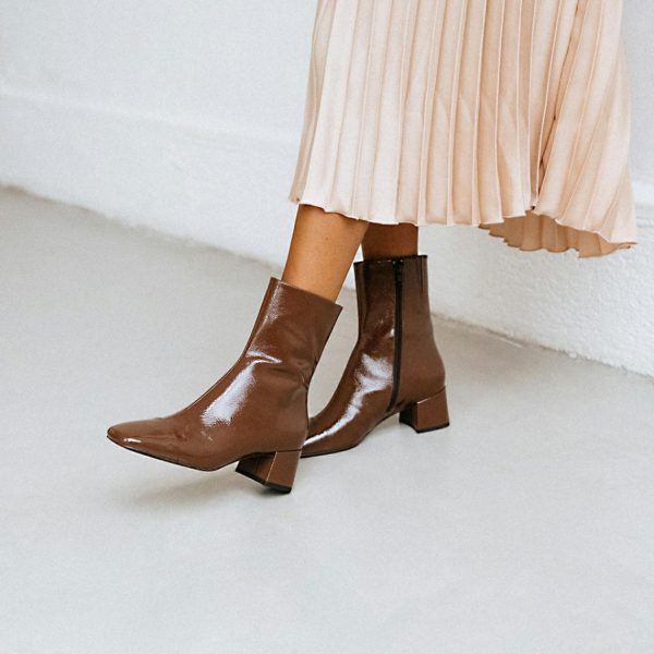 These DELORA boots with small heels in brown pleated patent leather are the pair you need this winter! Their square toe and lines give a feminine, rock and elegant look that will accompany you all season long. Wear with your flares, long skirts and dresses!