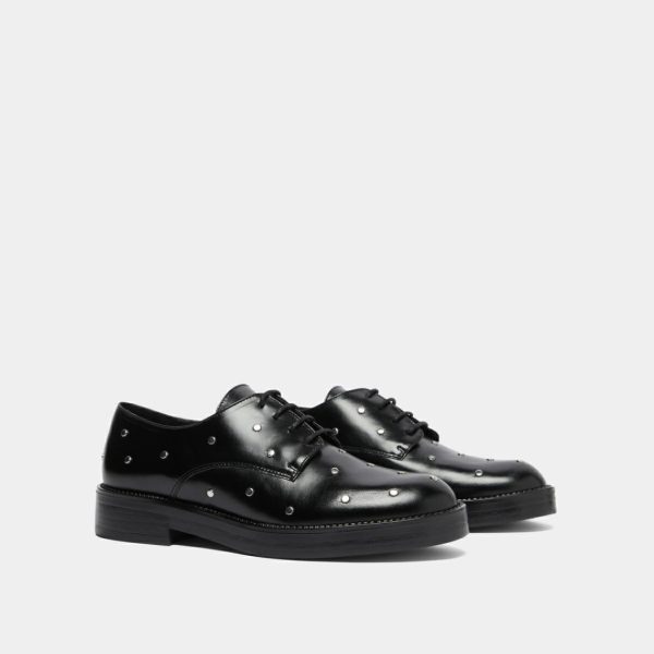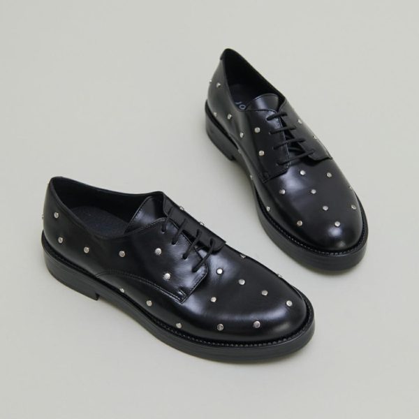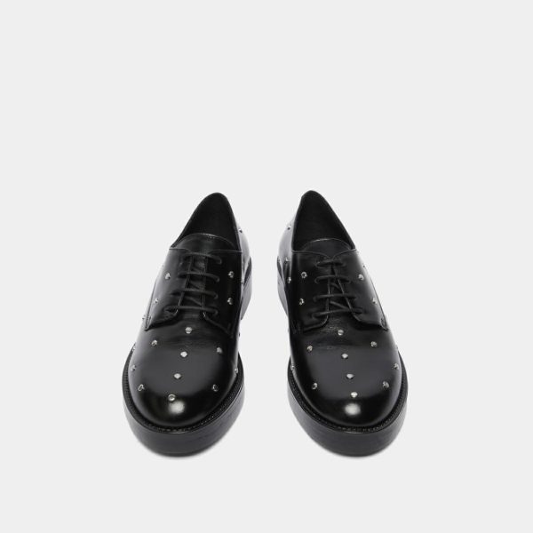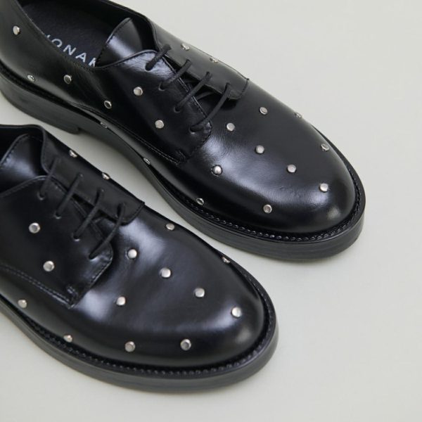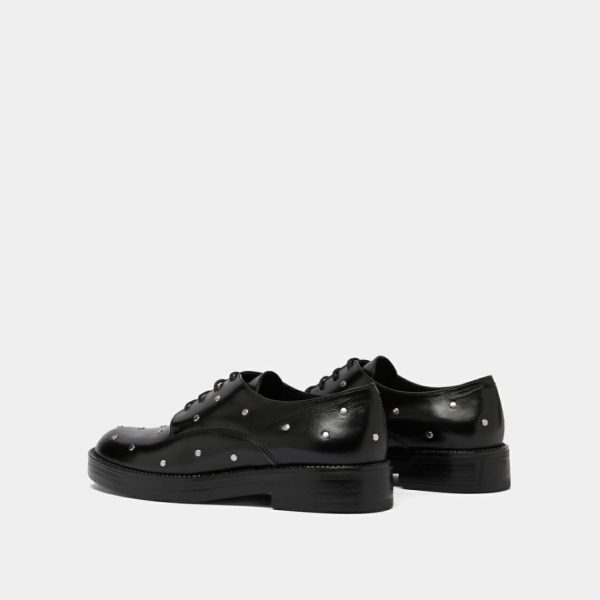 Featuring open-lace styling, our ASTOU derbies offer exceptional comfort that adapts to your natural foot shape. These sophisticated shoes showcase premium smooth leather with a subtle shimmer, delivering elevated style for any occasion. The upper features carefully placed rounded silver details that create a striking yet elegant contrast against the black leather. Perfect for completing both casual and dressy outfits with a touch of modern sophistication.
