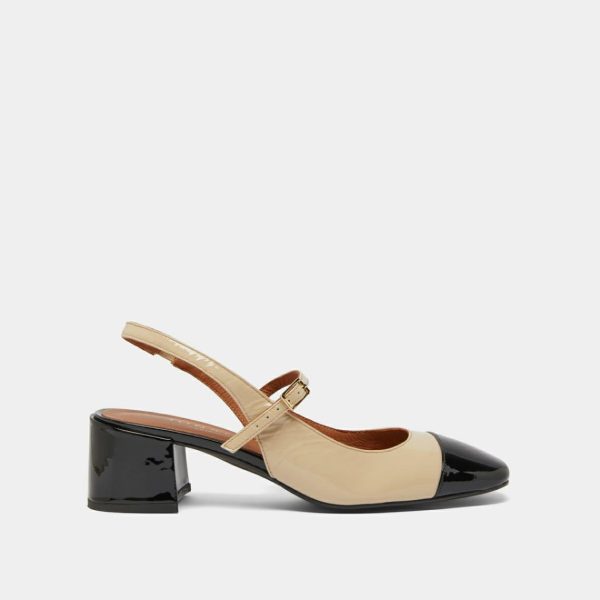 DOUMY are heeled babies whose square toes bring femininity and confidence. Their main feature is the interplay of materials and colors, reflecting modernity and originality. What’s more, their slight heels considerably lift the silhouette without affecting the foot when walking. In black and ecru patent, the contrast of these colors makes them timeless.