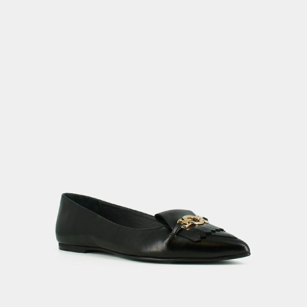 Pointed-toe ballet flats with loafers details, our DIESE are hybrid shoes that will satisfy aficionados of both families. In fact, when you combine the comfort of ballerinas with the aesthetic appeal of moccasins, you get DIESE, on which nothing is left to chance. In black leather, enjoy the contrast with the golden bits.