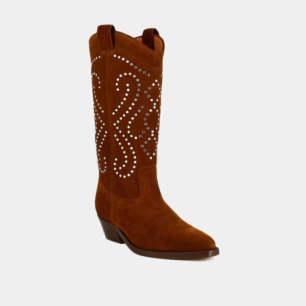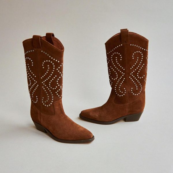 Back with the times, let us introduce you to our new santiags: the DYNASTIE. The upper is patterned and the heels are beveled, for our greatest pleasure. In cognac, pair them with your finest outfits.