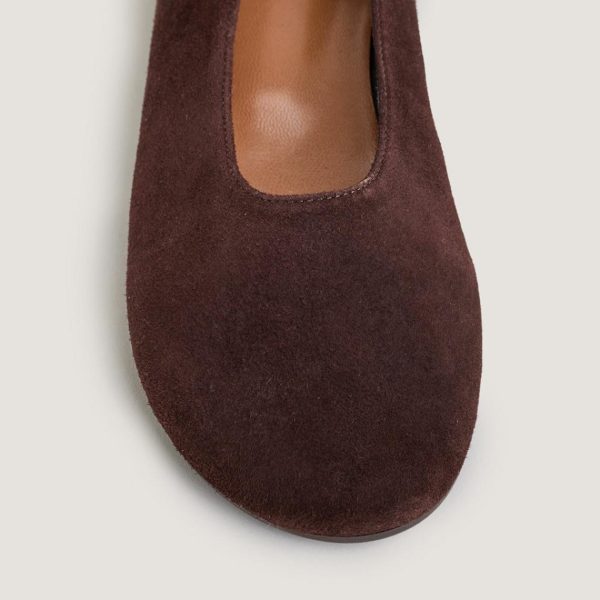Experience timeless sophistication with the DERLINE ballet flats in rich brown velvet. These beautifully crafted shoes feature a rounded silhouette with a delicate U-shaped opening that elegantly frames your foot. Made from premium velvet with an incredibly soft touch, they deliver both exceptional comfort and effortless style. The sleek design and versatile deep brown hue make these the perfect go-to flats for your everyday wardrobe.