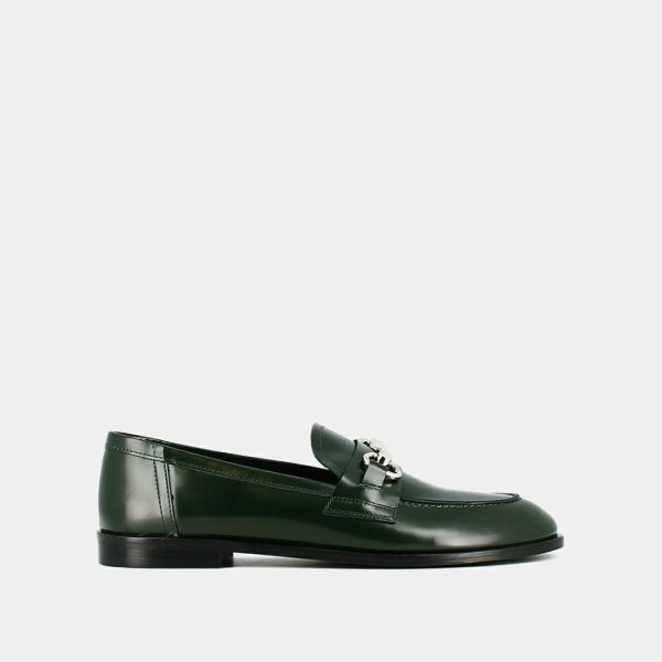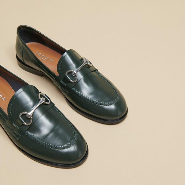 Jonak Loafers | Loafers With Silver Bits In Green Glazed Leather – Women