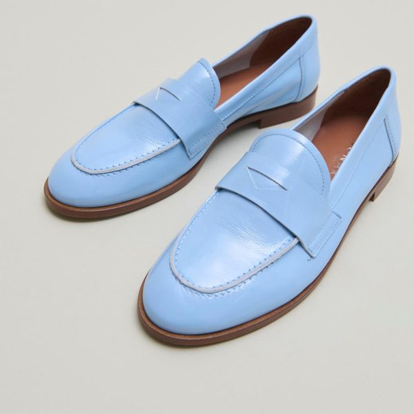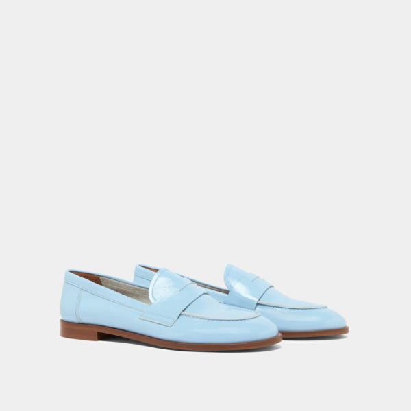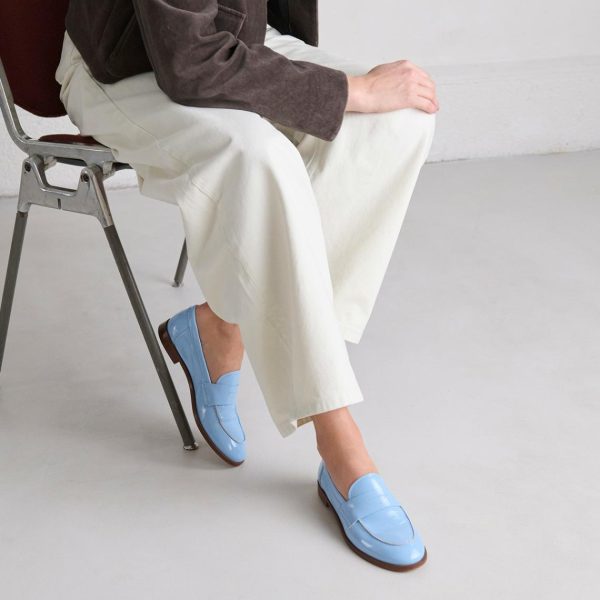 Let yourself be seduced by our THELMA loafers and their round toes, which will enhance your feet to perfection. Their light blue pleated patent adds a trendy, eye-catching element. For a chic, contemporary look, pair them with smart trousers.