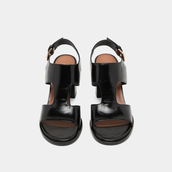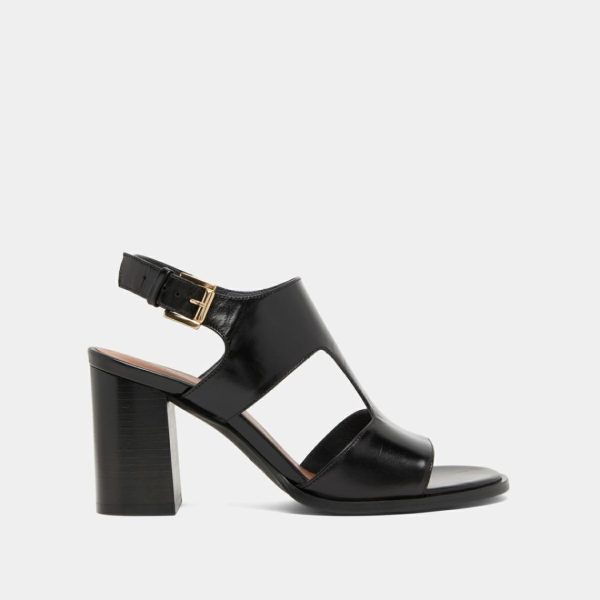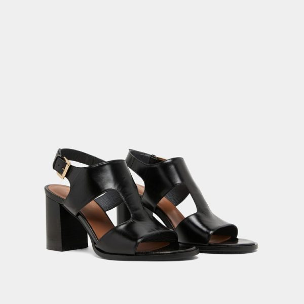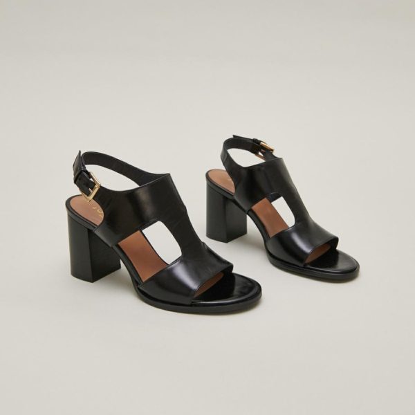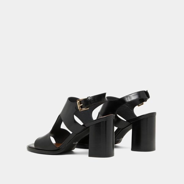 DING come knocking at your door to make their presence felt in your wardrobe. Don’t hesitate long and give in to the temptation of these black leather heeled sandals with wide straps that are subtly designed to delicately reveal your skin. Adjustable buckles at the ankles ensure a secure fit.