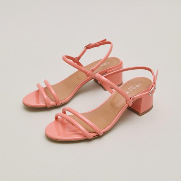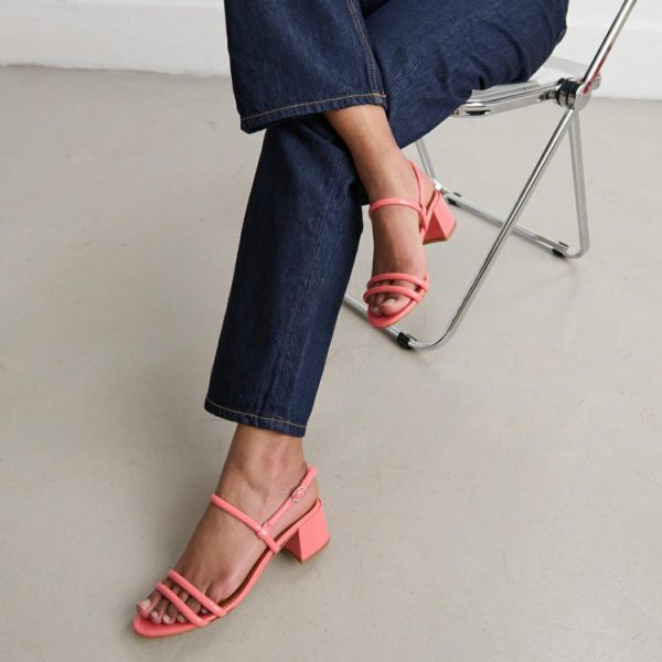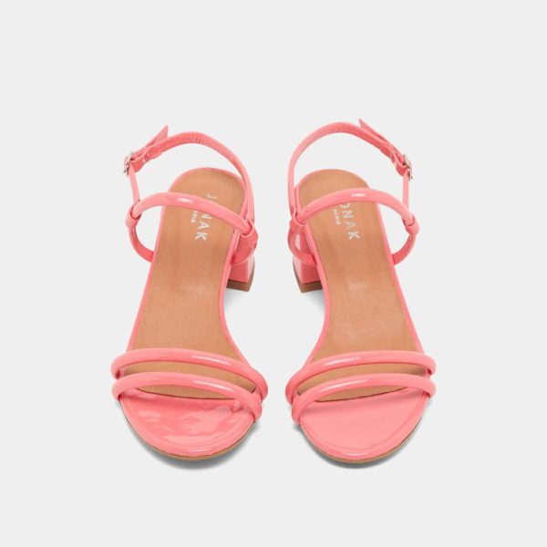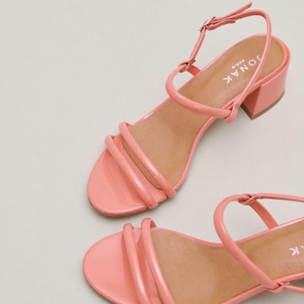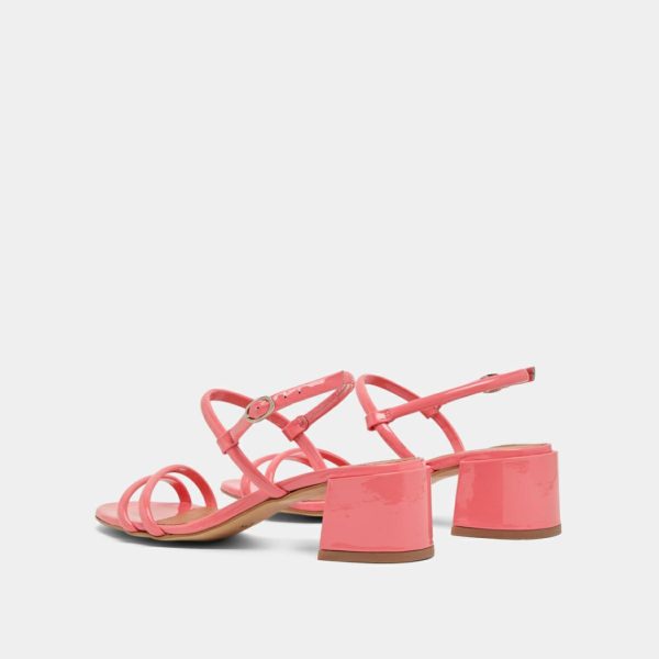 Elegant and distinguished, ADAM heeled sandals are beautifully composed of slender straps, two of which hold the toes in place, while the other two support the ankle. Their 4-centimeter heels are practical for longer-than-expected walks. In coral patent, they convey optimism and good humor.