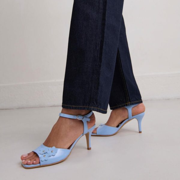 Our VAVA heeled sandals in light blue pleated patent are delicately embellished with flowers on the front of the shoe. What’s more, you can count on these sandals to help you walk with confidence and support, thanks in particular to their adjustable buckles at the ankles. For a touch of originality, you will love the embossed flowers with pretty silver rivets on their breasts.