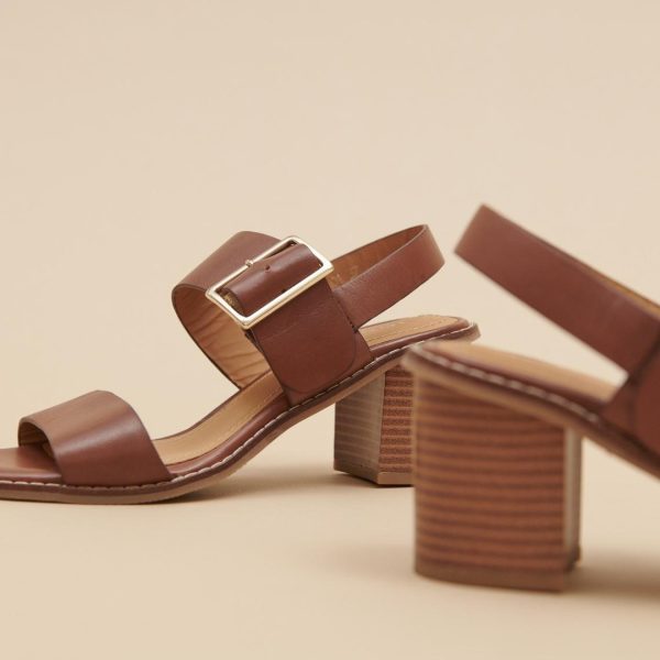 Fall for our ACRE heeled sandals in cognac, but in a new material: leather! Chic and trendy, they are adorned with a delicate buckle that will go perfectly with your summer outfits.
