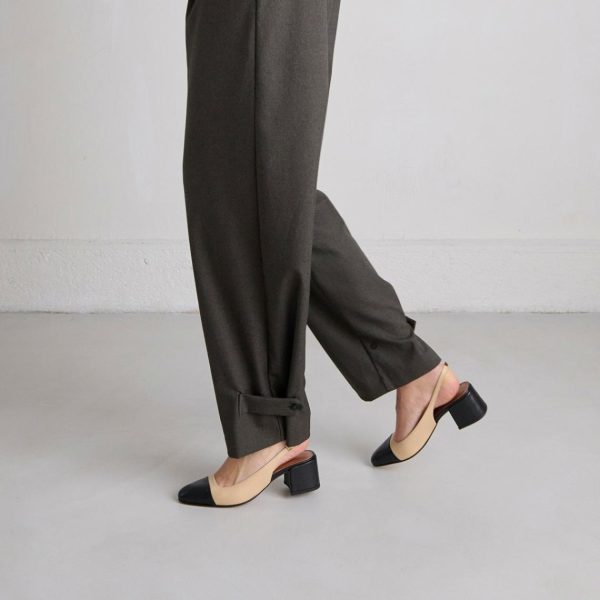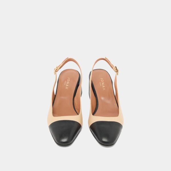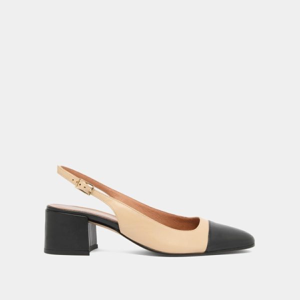 Our new DHAPON heeled slingbacks in black and beige leather will sublimate your feet with their delicate adjustable straps and play of colors, bringing vintage and modernity together. Let the light 5-centimeter heels lift your silhouette with ease and comfort.