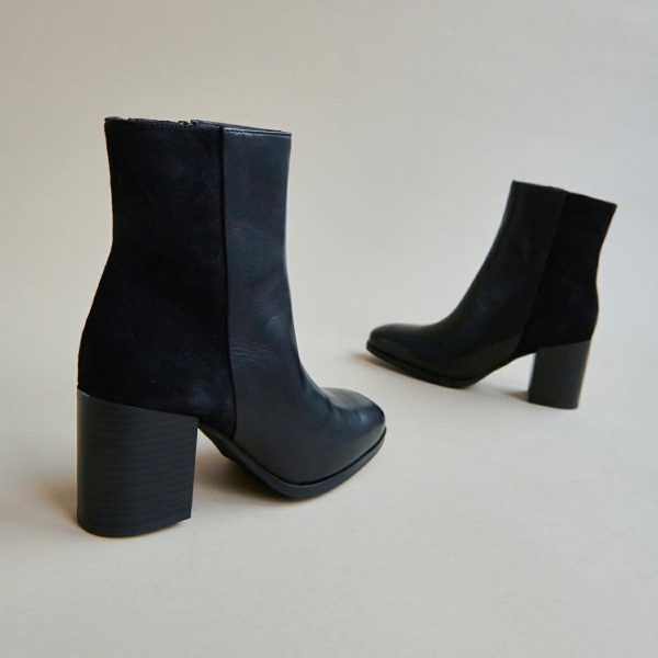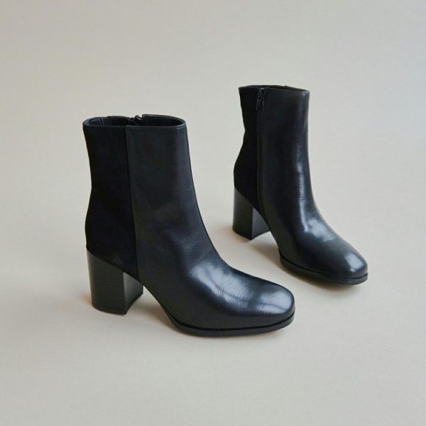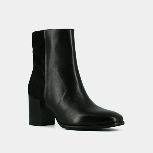 Jonak Women’s ALBAN Black Leather & Velvet Heeled Ankle Boots