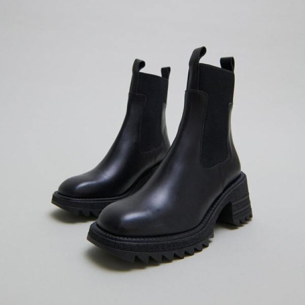 The DOVEs showcase a distinctive notched sole, substantial heel, and elasticated ankle design that creates a flattering, leg-lengthening silhouette.