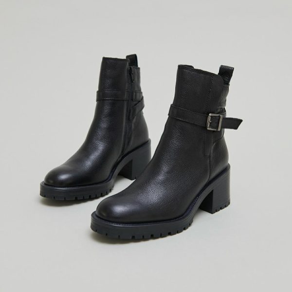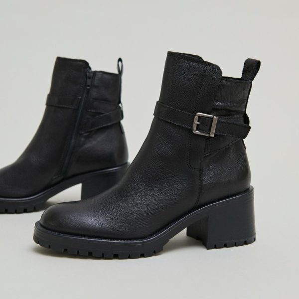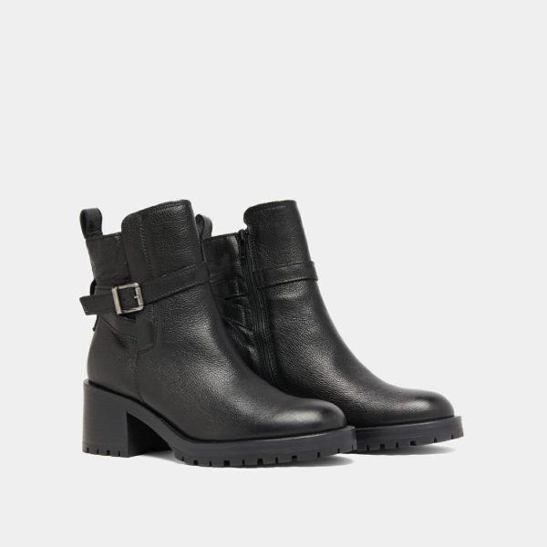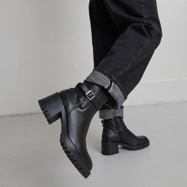 Elevate your winter style with our CLOVIS boots in sophisticated black reptile-embossed leather. These fashion-forward boots feature a classic rounded toe and distinctive buckle fastening at the ankle, creating the perfect blend of timeless elegance and contemporary flair. Perfect for completing your everyday outfits – pair them with skinny jeans for a chic urban look during city adventures or weekend getaways.