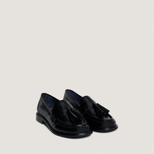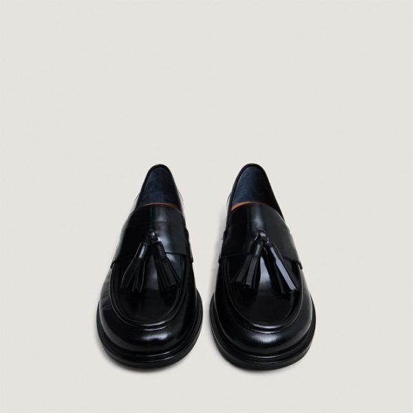 Discover the sophisticated DAMANDE loafers in luxurious black leather that elevate your everyday style. These beautifully crafted shoes feature a polished finish that adds instant refinement to any ensemble. The elegant fringe-and-tassel detailing provides a contemporary twist on classic loafers, making them perfect for both professional settings and casual outings.
