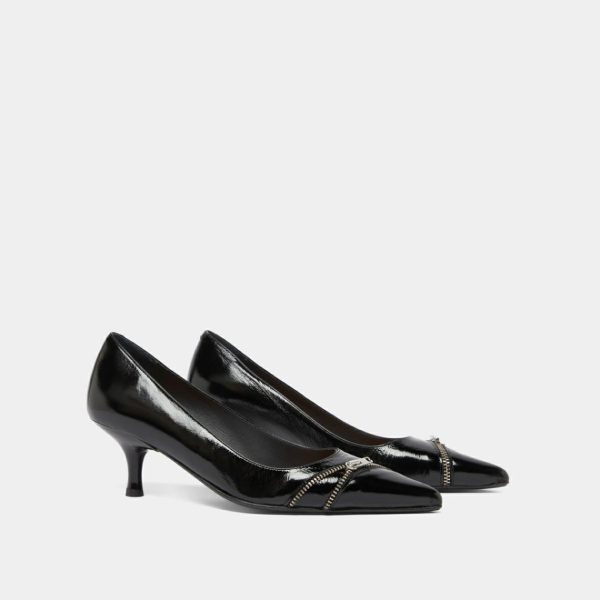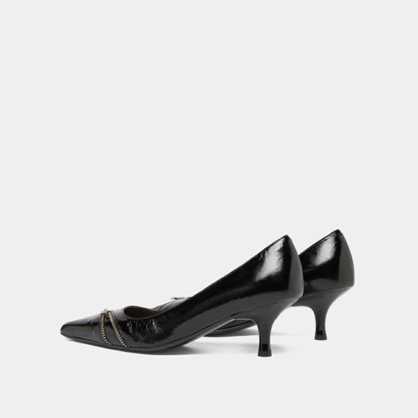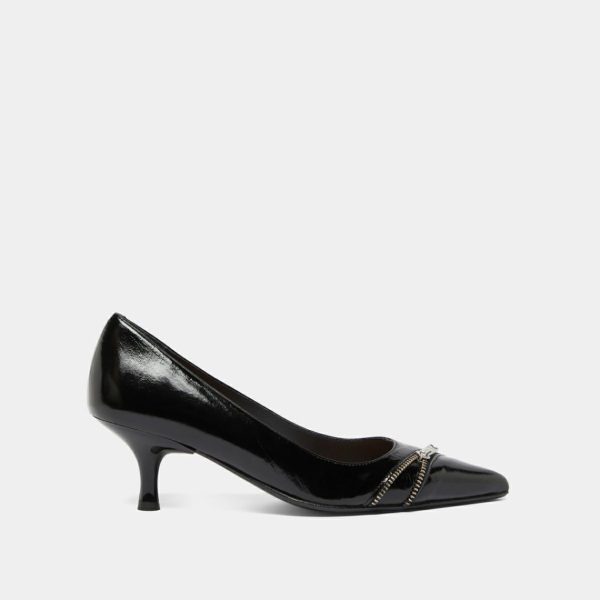 Meet the DANIELA pump – where sophisticated style meets modern edge. These stunning pumps feature a distinctive front zip fastening that adds contemporary flair to your look. The elegant pointed toe design creates a sleek silhouette that transitions effortlessly from office to evening.