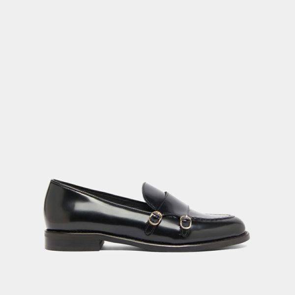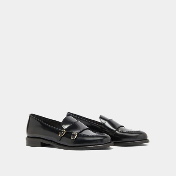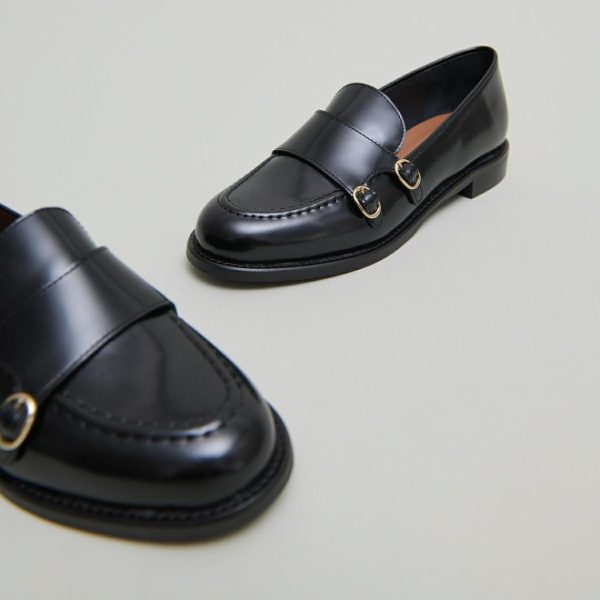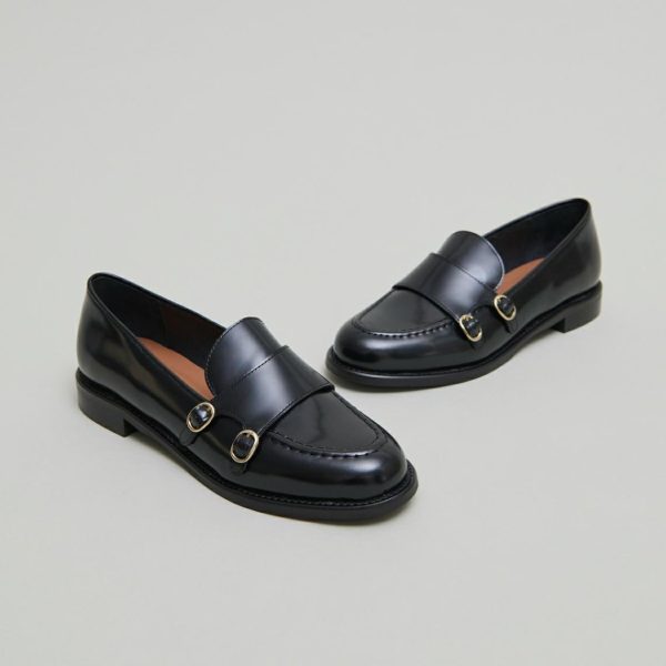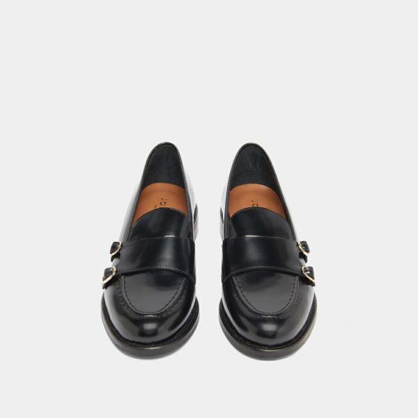 Jonak Women’s DRIZZA Black Glazed Leather Buckle Loafers