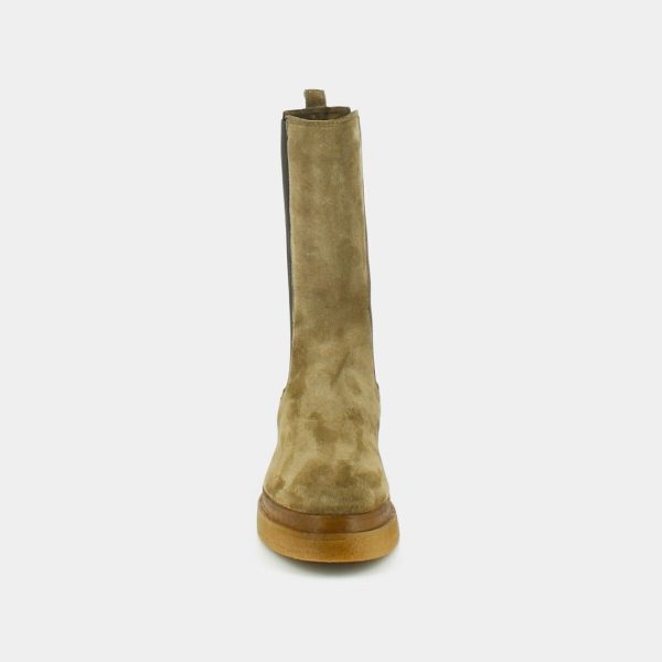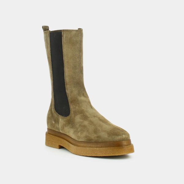 Discover these chic ankle boots featuring a rich taupe suede finish and convenient elastic side panels that deliver both comfort and contemporary style.